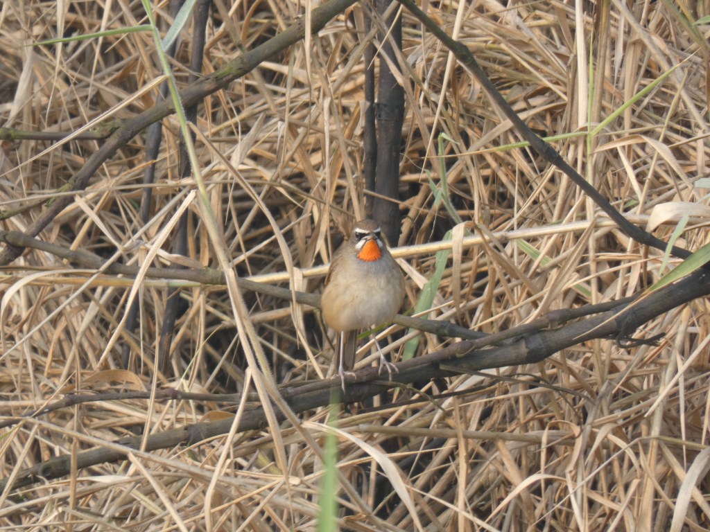 After the Rubythroat disappeared into even thicker brush, I saw Zaber Ansary, one of the local birders, coming along the path. He stopped and went down near where we had seen the munias. When he caught up with us he told us what he had been photographing. It was a pair of Rubythroats which he gotten nice shots of (you can view his photos on the eBird checklist I give a link to at the bottom). Fun to figure out that there are at least 3 “Rubys” around.