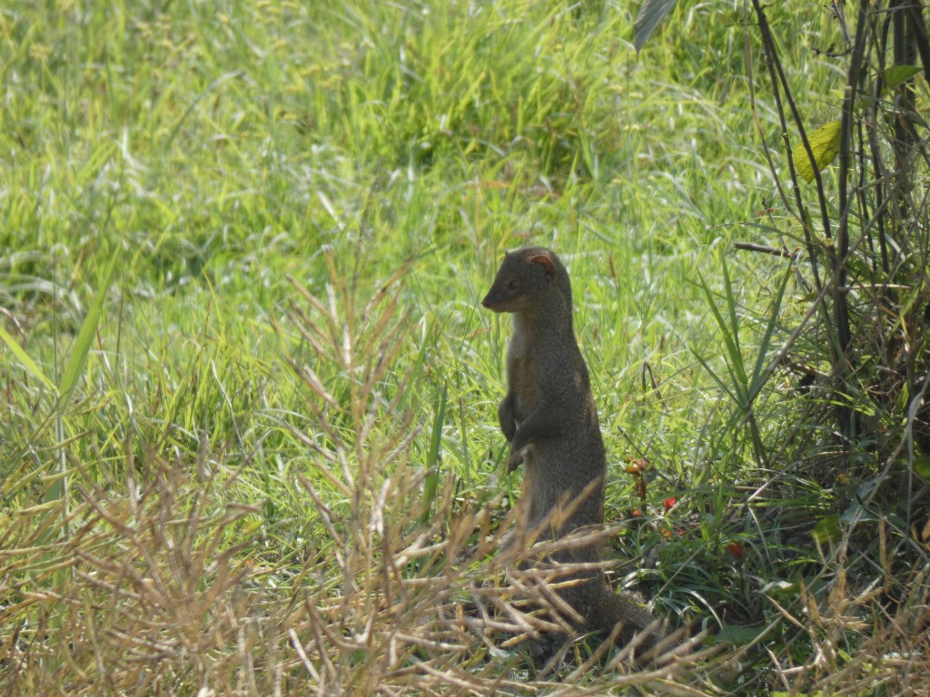 We had a fun non bird ending when I noticed a Small Indian Mongoose (quite common here) in an unusual pose. It was standing on its hind legs which reminded us of a Meerkat. 😉