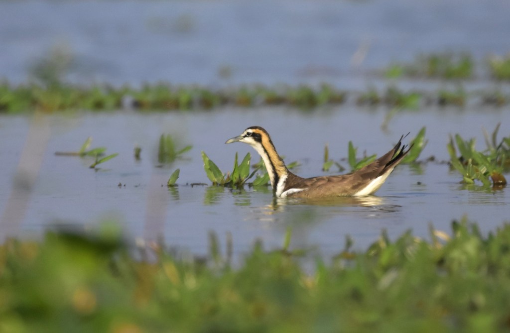 We had Wilson’s Phalarope, Semipalmated, White-rumped, and Spotted Sandpipers at the east shore area at Cheney but no Ruddy Turnstone. Northern Shovelers and Franklin’s and Ring-billed Gulls were also new for the trip list. We quickly checked Christmas Tree Cove and got a nice Painted Bunting which was a county bird for Franklin and Michael (county birds for Reno, our home county, are a bigger deal than other counties). From there we went to Yoder Cove which has been excellent for shorebirds this year. Besides Semipalmated and White-rumped Sandpipers we added Snowy and Semipalmated Plovers, American White Pelicans, Black, Forster’s and Least Terns (county bird for me!) and a late Hudsonian Godwit. Part way into scanning the shorebirds a rain storm hit us so we sheltered under a tree and scoped from there. One distant tern made us wonder if it could be a Common Tern, but we ended up deciding it was likely just Forster’s.