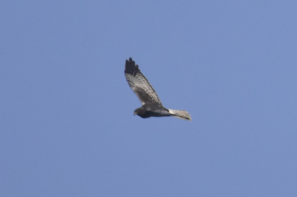 Our main target in this rolling prairie on the flint hills is Henslow’s Sparrow. They have an odd, short buzzy insect like song that would be pretty easy to miss, but we had all listened to recordings of of it beforehand so we’d hopefully pick it out. Henslow’s Sparrows are an uncommon breeding species in the eastern third of Kansas in the right habitat. Konza Prairie is one of the more well known consistently reliable spots for them so we figured we should find at least one or two. There are 3 loops of trail roughly 2, 4, and 6 miles respectively. I noticed that most eBird lists with Henslow’s Sparrows had a distance of just over 4 miles so I figured that was the loop to take. The first mile seemed like relatively good habitat for Henslow’s but we didn’t hear any Henslow’s or the more common breeding Grasshopper Sparrows. About a quarter mile after the first and second trails split we heard our first Grasshopper Sparrow and then a few hundred yards farther on a sparrow flushed giving a quick “tink” call as it flew. Anthony and I immediately said Henslow’s! The others had heard it but none of us had good looks as it quickly dropped over the side of a hill and disappeared. After waiting a bit we moved on and about half a mile farther on we had one consistently singing. Unfortunately it insisted on staying buried in the low vegetation and we never got good looks. But we were all quite glad to have gotten a lifer even with less than satisfactory views.
